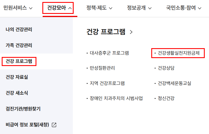 - 건강실천카드: 관리형 참여자의 경우 chak 앱에서 카드 발급 후 의원 진료비 결제에 사용