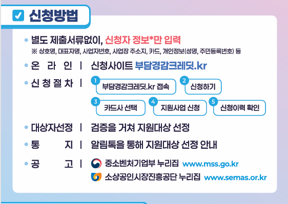 - 부담경감 크레딧 전용 콜센터: ☎ 1533-0600 (평일 09:00~18:00)