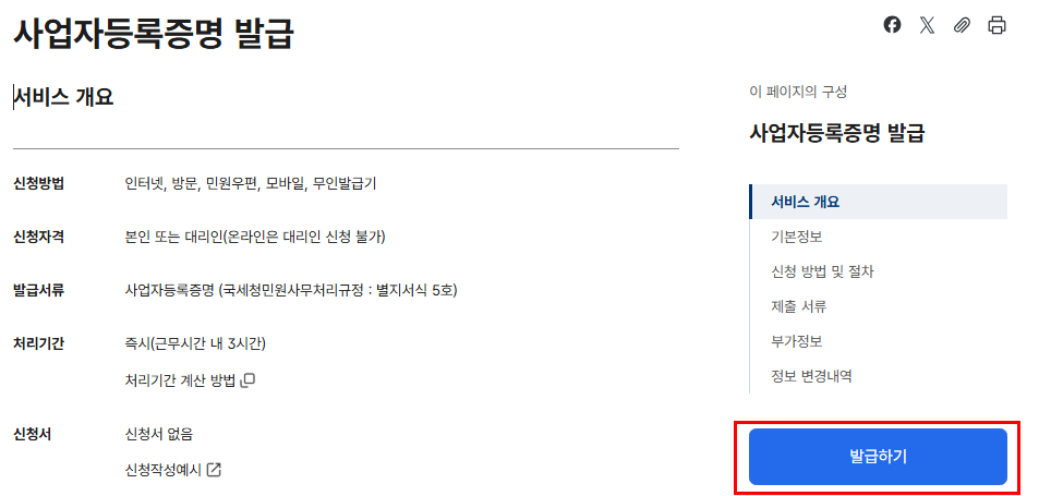 정부24, 홈택스, 손택스 모두 사업자등록증명원 발급은 무료입니다. 단, 무인민원발급기 또는 세무서 창구 이용 시 일부 발급 수수료가 부과될 수 있습니다.