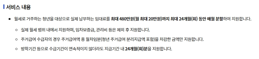 - 청년 본인 가구의 소득은 기준 중위소득 60% 이하