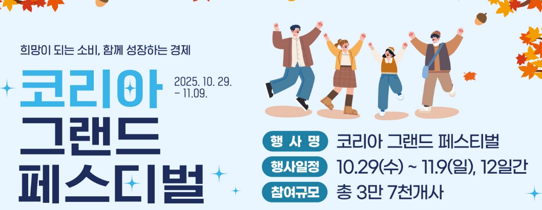 매년 가을, 대한민국 전체가 쇼핑 축제로 들썩이는 시기가 찾아왔습니다. 올해도 ‘코리아 그랜드 페스티벌’이 개막하며 전국적으로 대규모 할인행사와 상생 이벤트가 동시에 펼쳐지고 있습니다. 생활 속 실질적인 혜택부터 관광·문화 연계 행사까지 다양한 프로그램이 마련되어 국민들의 기대가 높습니다.