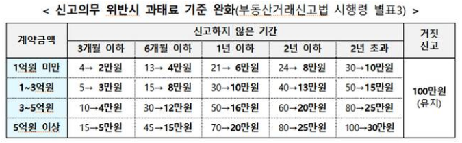 예를 들어, 계약금액이 5억 원을 초과하는 임대차 계약을 2년 이상 신고 지연한 경우, 과거에는 100만 원이 부과됐지만 앞으로는 최대 30만 원으로 줄어듭니다. 1억 원 미만 소형 주택의 경우 10만 원 수준으로 과태료가 감경됩니다.