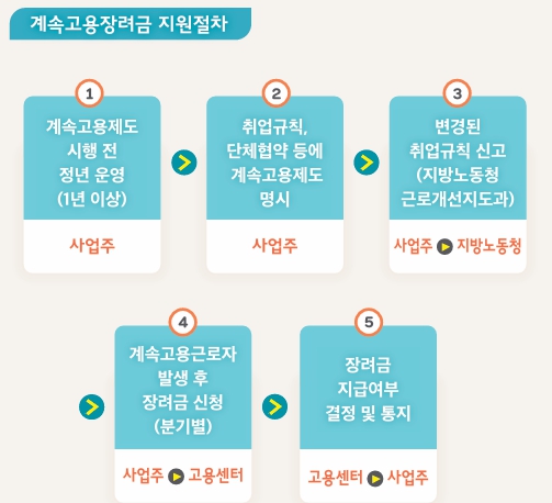 장려금은 분기 또는 연 단위로 지급되며, 계속고용 기간에 따라 금액이 달라집니다. 특히 일정 기준을 충족한 근로자 1인당 지원금이 산정되기 때문에, 고령 직원 수에 따라 전체 지원 규모가 달라질 수 있습니다.
