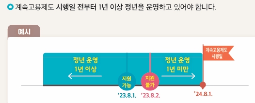 - 정년 폐지 후 재고용한 경우 → 재계약 체결 기간에 대해 지원금 산정