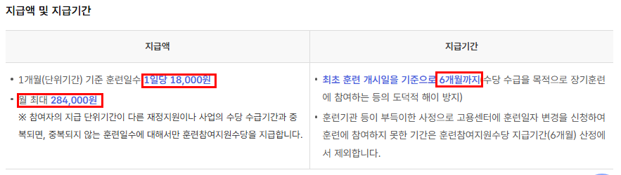 - 최대 200만 원 한도 내에서 훈련 참여 기간 중 매월 지급