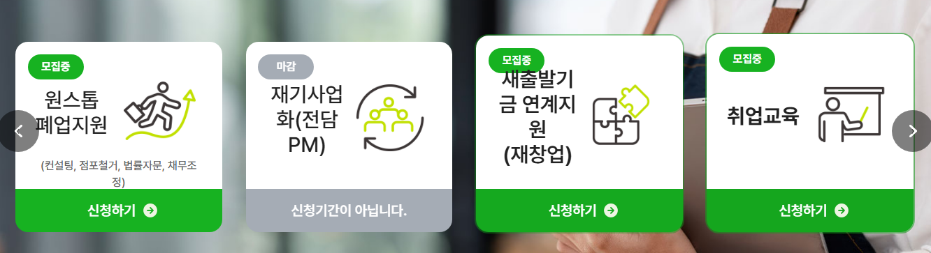 - 폐업한 지 3년 이내이거나, 현재 경영위기를 겪고 있는 소상공인