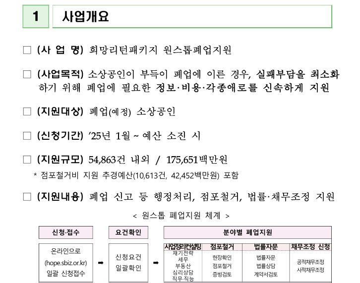 따라서 폐업을 고민 중인 소상공인은, 단순히 손을 놓기보다 희망리턴패키지를 통해 비용 부담을 줄이고 정리 절차를 체계적으로 진행하는 것이 훨씬 유리합니다.